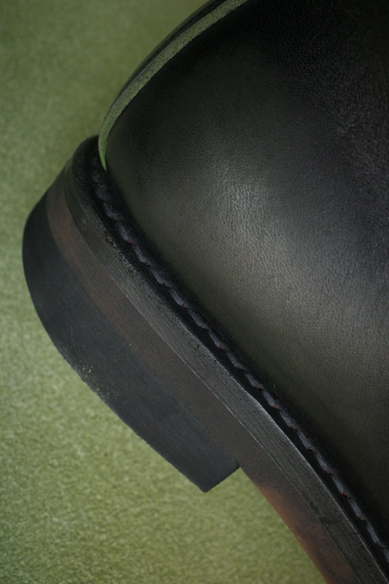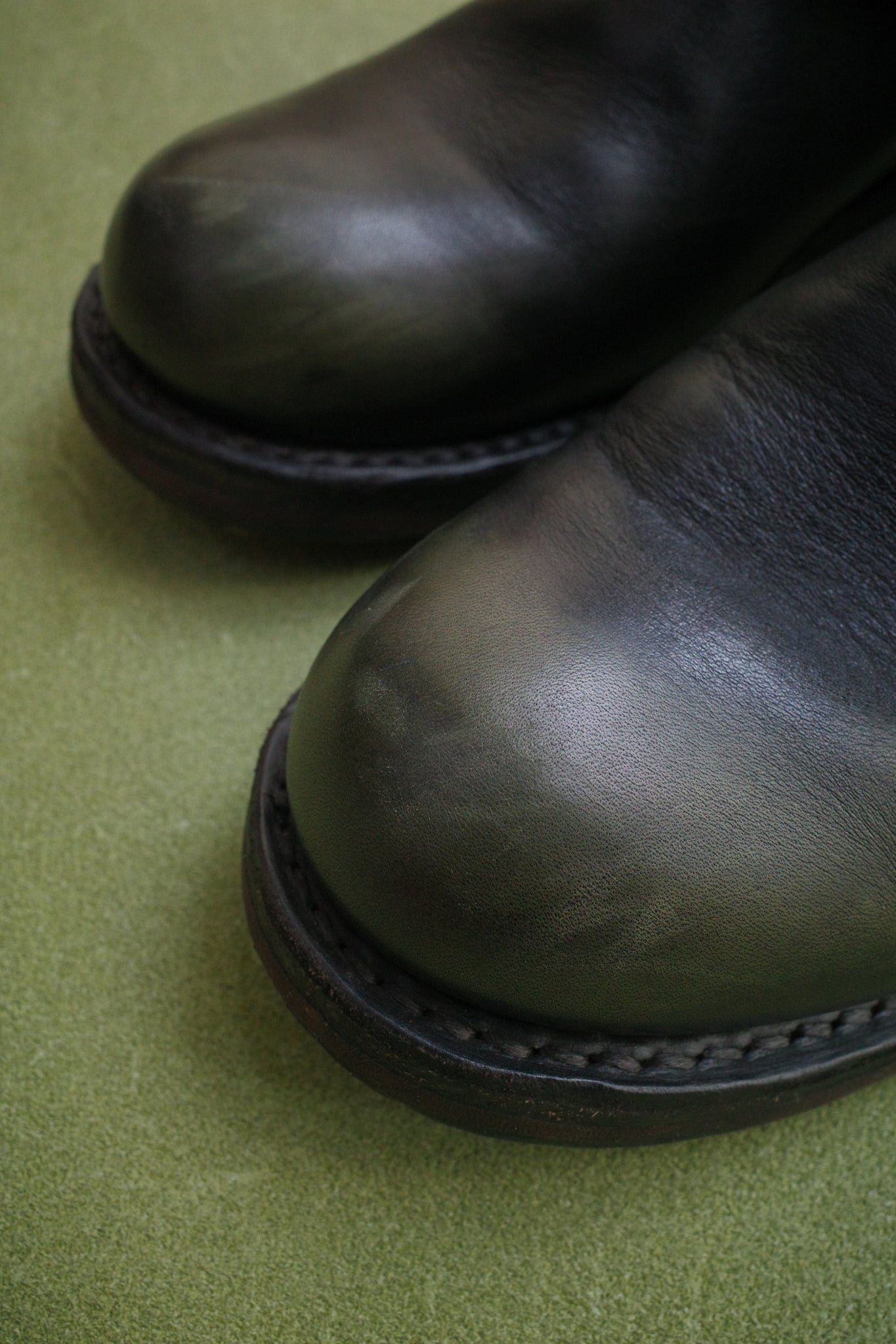 履き込むにつれ、茶色ではなく緑の下地が見えてくる仕様となっております。