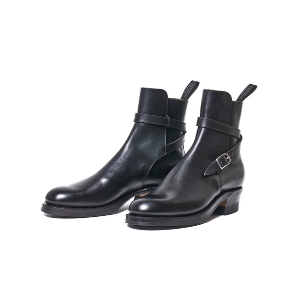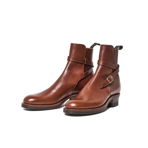 Design --- Jodhpur Boot, which was originally designed for horse back riding in the end of 19th century in England, is a boot filled with functional beauty and class. We make this boot with our original last which was modelled after US Navy last and with Direct Welt construction (stitching upper and welt from thorough the channel on the bottom of insole, and then stitching sole and welt) that enables the boot to have sharp looking. The strap system is also original. The long rectangle buckle is held by short stay on the side that makes putting on and off easy and smooth.