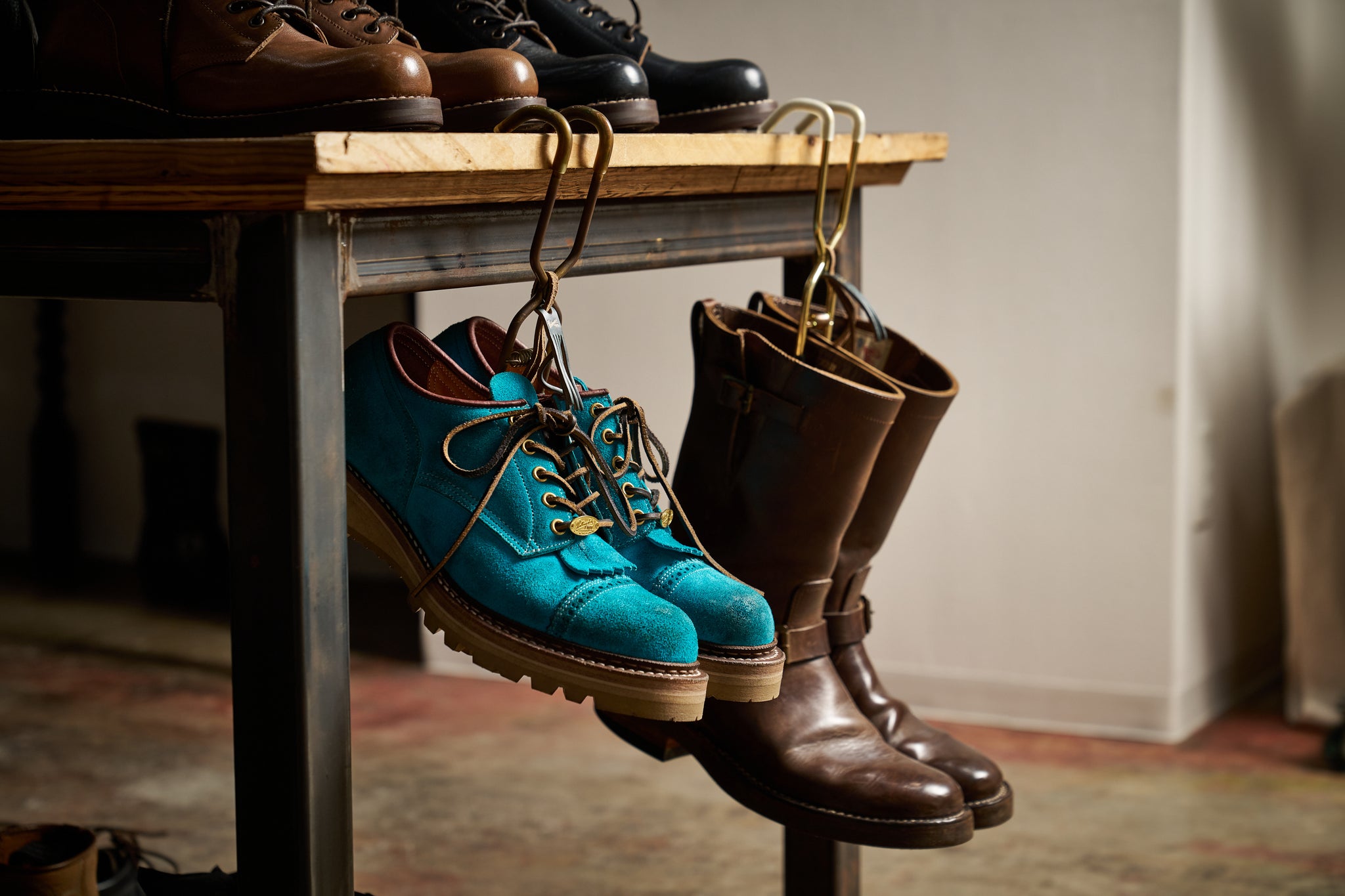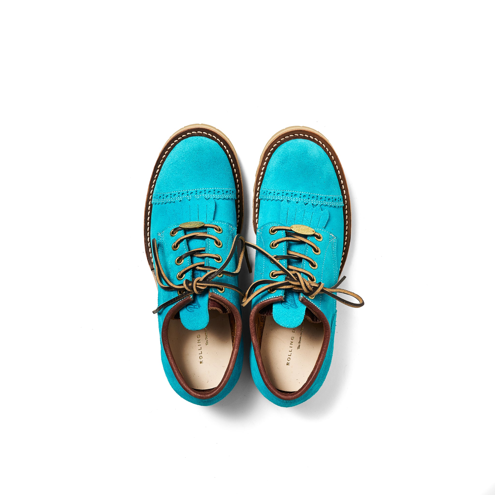 The upper leather is a turquoise oil suede specially crafted by Nakamura Sennosuke Shoten.